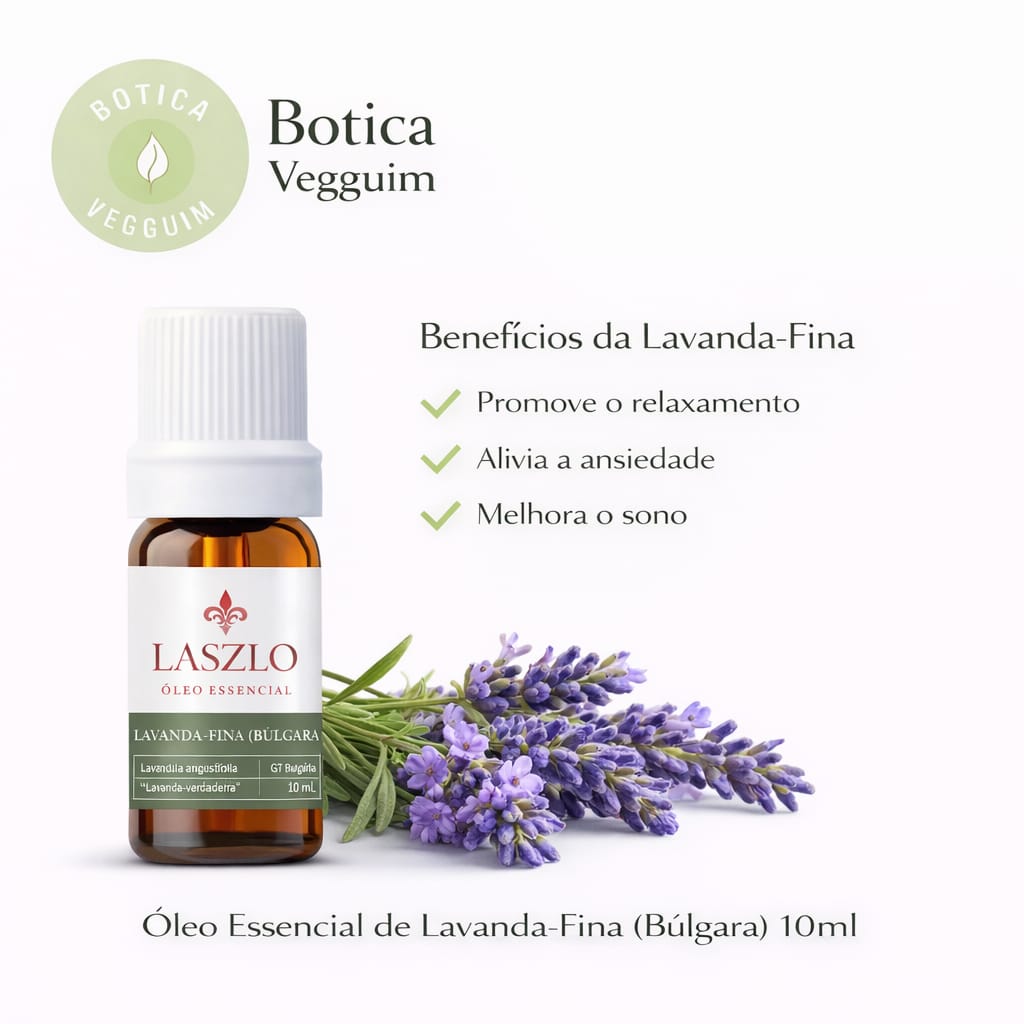 Óleo Essencial de Lavanda da Bulgária tradicionalmente utilizado na aromaterapia para promover calma e bem-estar.